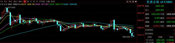 暴跌!黄金考验1800美元支撑,四个月下跌近300美元/盎司