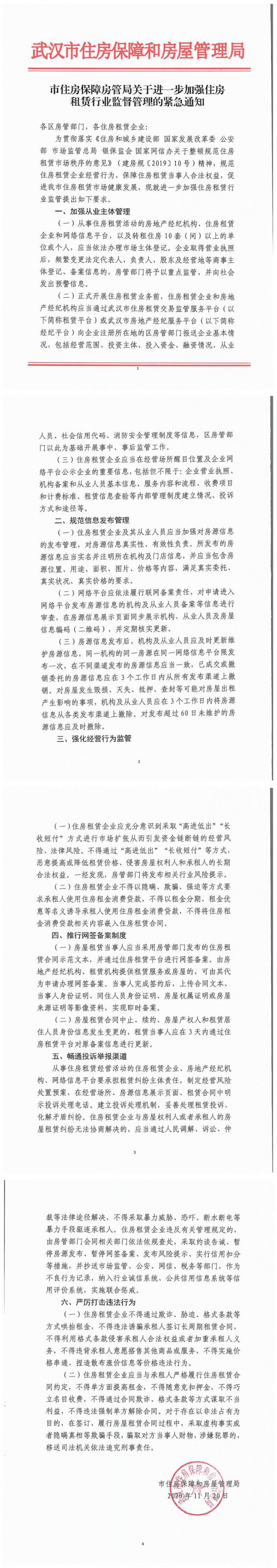 武汉市房管局发布关于进一步加强住房租赁行业监督管理的紧急通知,通知提出,从事住房租赁活动的房地产经纪机构、住房租赁企业和网络信息平台,以及转租住房10套(间)以上的单位或个人,应当依法办理市场主体登记。