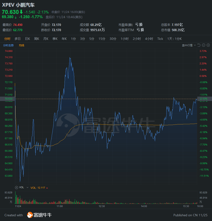 小鹏汽车盘中巨震,一度跌逾12%,收跌2%