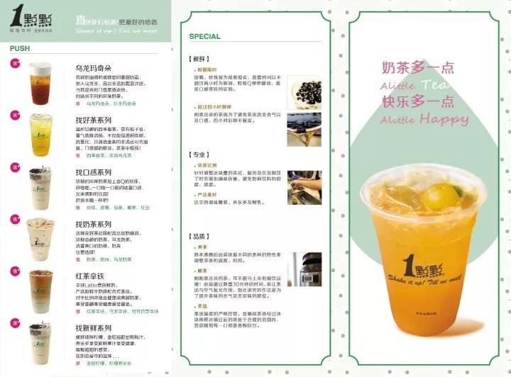 复杂的比如来自台湾的奶茶品牌“一点点”,其就有以纯茶为主的“找好茶”、奶茶为主的“找奶茶”、不同加料口感为主的“找口感”、加水果为主的“找新鲜”。