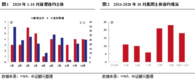 2014年至2020年10月末,国内债券市场违约主体共188家,其中违约集团主体89家,违约数量自2018年以来明显增多,大部分为“子弱母弱”集团,具有明显“子强母弱”特征的共11家。