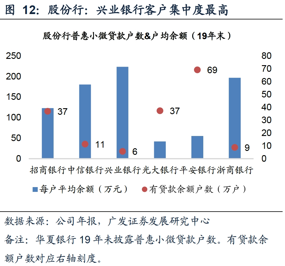 数据显示,大行和股份行的普惠小微贷款户均余额都在40万以上,户均余额最高的兴业银行则达到了200万以上。
