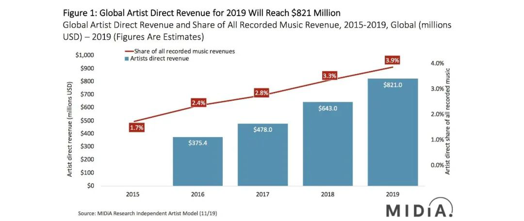根据分析平台Midia Research发布的数据显示,2019年全球录制音乐产业实现连续第五年增长,共增长11.4%,达到215亿美元,与2018年相比增长22亿美元。其中,流媒体收入达到119亿美元,同比增长24%,占总收入的56%,成全球音乐产业的主要增长动力。