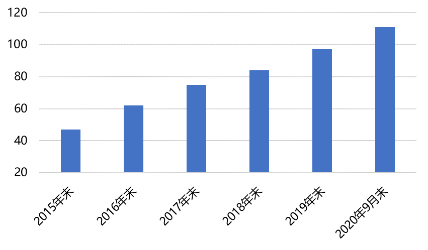 从债券市场存量规模看,截至2020年9月末,全国债券市场存量债券余额111.01万亿元,较2019年末增加13.91万亿元(数据来源:Wind、新世纪评级)。
