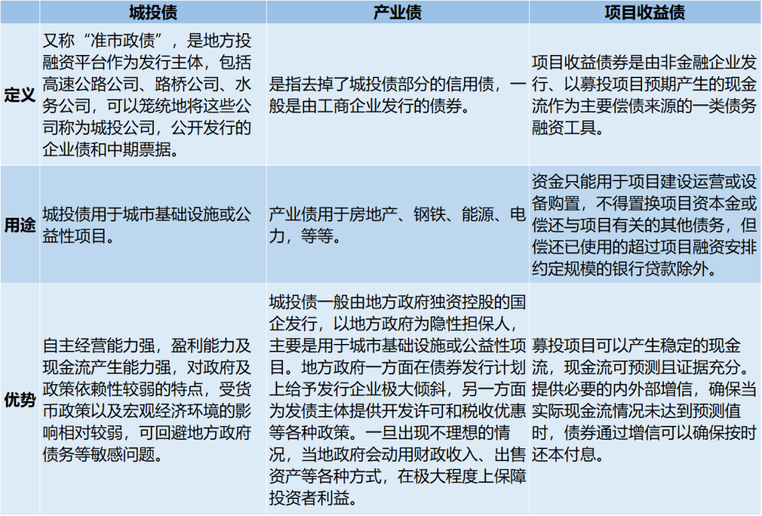 根据募集资金用途的不同,企业债主要分成以下三大类:第一类是地方政府的融资平台公司所发行的城投债,第二类是产业类公司发行的产业债,第三类是项目收益债。