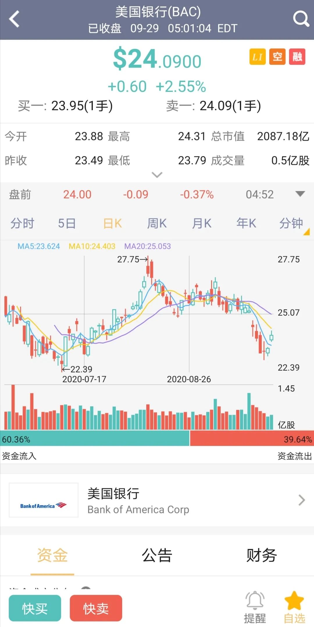 美国银行股票在疫情以前一直处在新高状态,达到35美元,而由于受到了新冠疫情的影响,导致股价重挫下跌至18美元左右,现在处在26美元的上升阶段,未来股价还有一定的上升空间,涨幅估计在40%左右,之后还会朝新高的趋势方向发展。