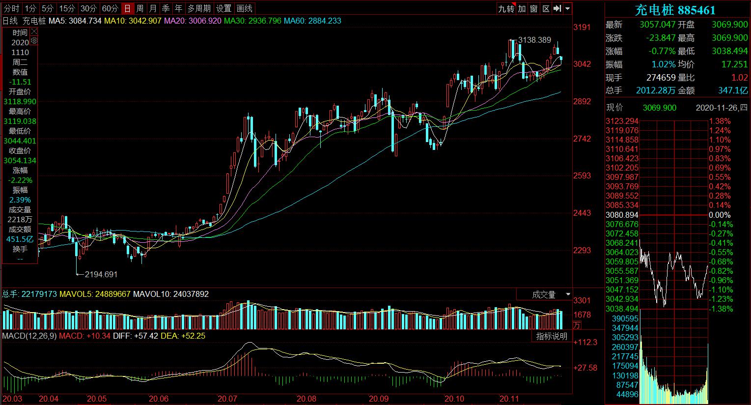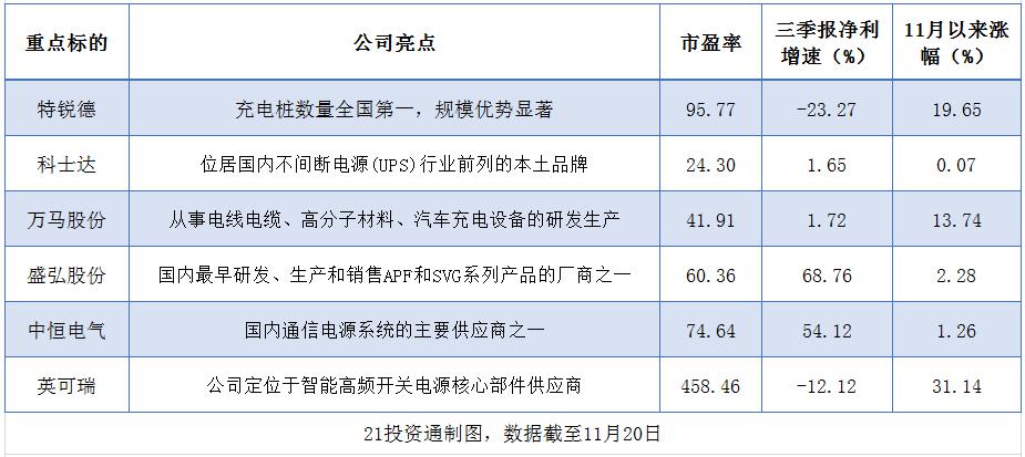 在十月中旬,充电桩指数突破前高,重拾涨势。经过短暂调整后,从上周三开始指数再次上涨并延续至今。近两个月充电桩累计涨幅超过12%。