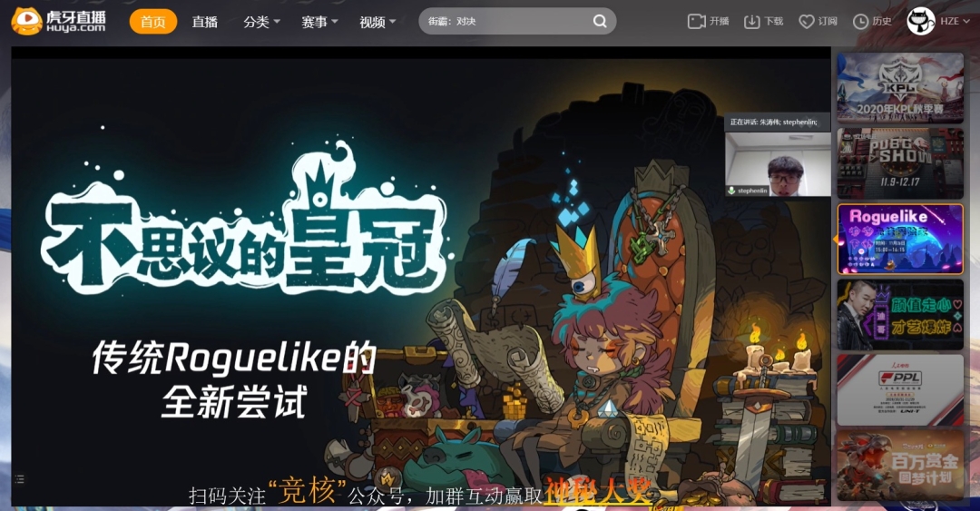 11月26日,竞核联合钛媒体、虎牙直播、游戏陀螺发起了“不可思议的游戏制作人”线上分享会第四期“Roguelike浪潮下的先锋探险家”。