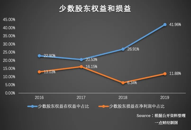 更为重要的是,看似下降的净负债率也另有“蹊跷”,少数股东权益的增加成为其平抑负债率的“大功臣”,而同期少数股东损益却原地踏步。