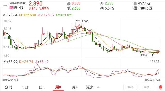 发布私有化提案的当天,如涵控股美股收盘价不到2.9美元,当日跌幅超过6%。截至11月25日,如涵控股的总市值,已经跌至不足2.5亿美元。而在一年半前的2019年4月份,如涵在纳斯达克敲钟之时,这个数字还是10亿美元。在短短一年多的时间里,如涵控股的总市值,缩水近75%。