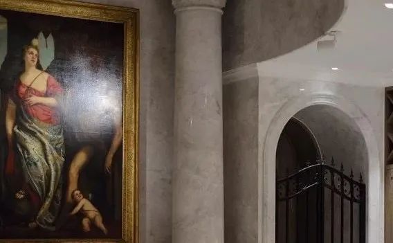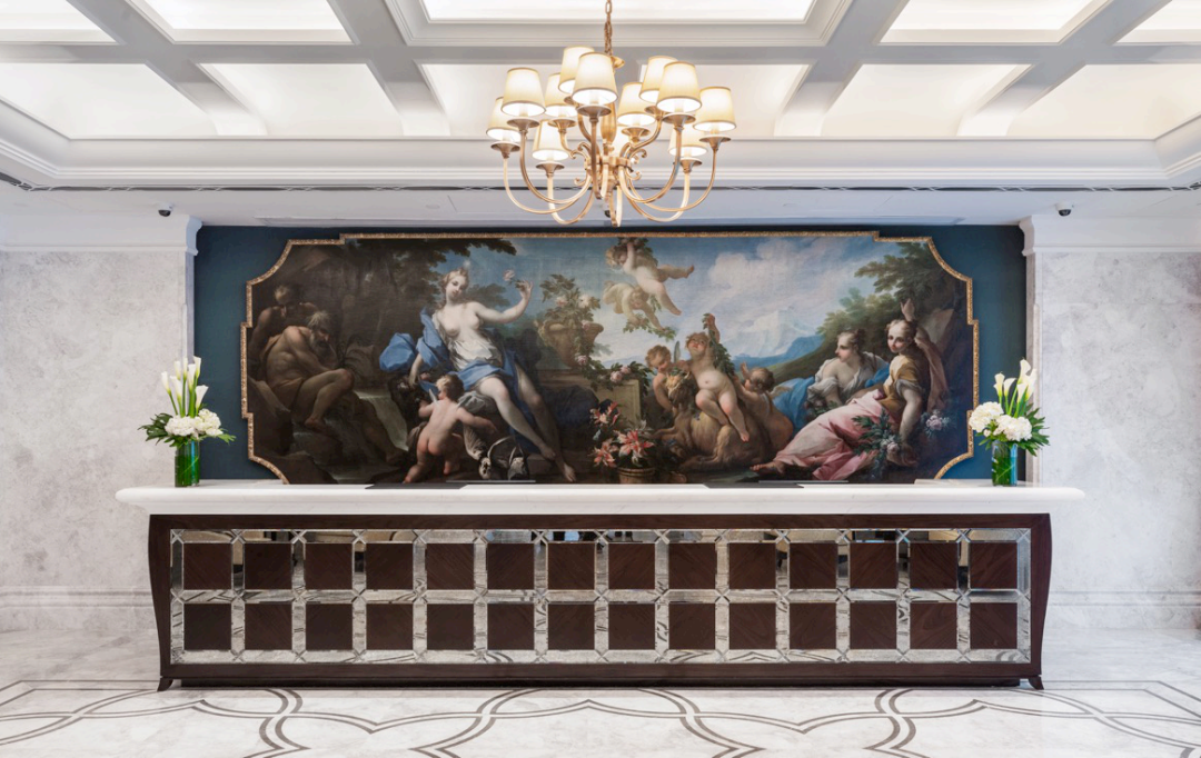 酒店前台后的大型油画《欧若拉与戴安娜女神之春之寓言》具有浓厚的欧洲美学艺术色彩,与酒店大堂灰白色的室内装饰对比,给入住客人强烈的视觉冲击,也奠定了酒店的美学基调。