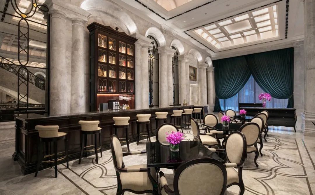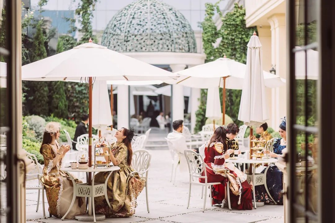 精致的下午茶与酒店气质呼应。每天下午十四点至十七点,酒店还有精心准备的传统英式下午茶——名媛下午茶。走进这里感觉被浓厚的仪式感包围,不禁就会放慢脚步,仿佛背影和旧时的绅士淑女重合。享受着传统大吉岭红茶,品尝着被经典的英式三层架呈上的各式西点,穿上洛可可服饰,仿佛回到了18世纪的欧洲宫廷,体验旧时光。