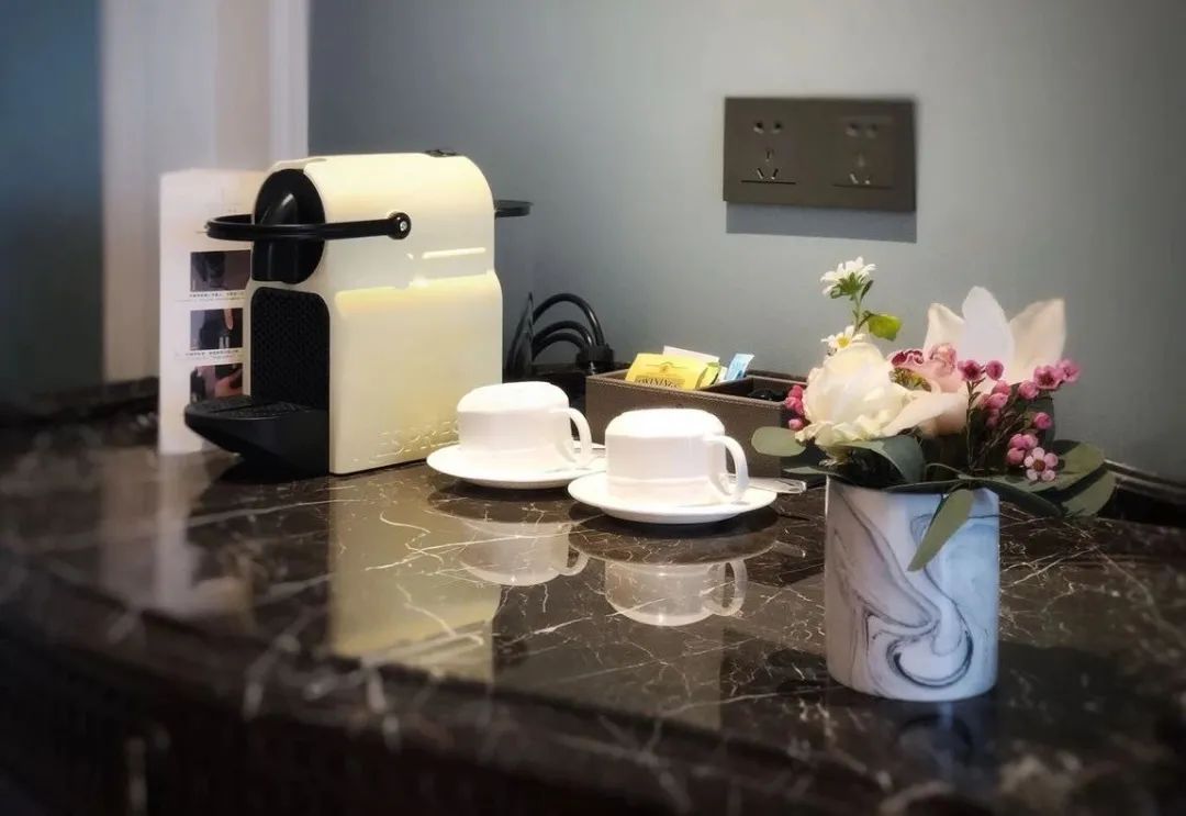 在客房设置上,除了古典的外表,生活用品也颇为讲究,塑造高品质的“家庭卧室”。所有客房均配有Nespresso胶囊咖啡机、国际品牌洗护品、智能坐厕、蓝牙多功能音箱、美国serta床垫、Kohler卫浴,雨林花洒、英国川宁茶包、加厚防滑拖鞋,国际卫星频道、48寸Philips LED智能电视机和24小时高速无线上网。