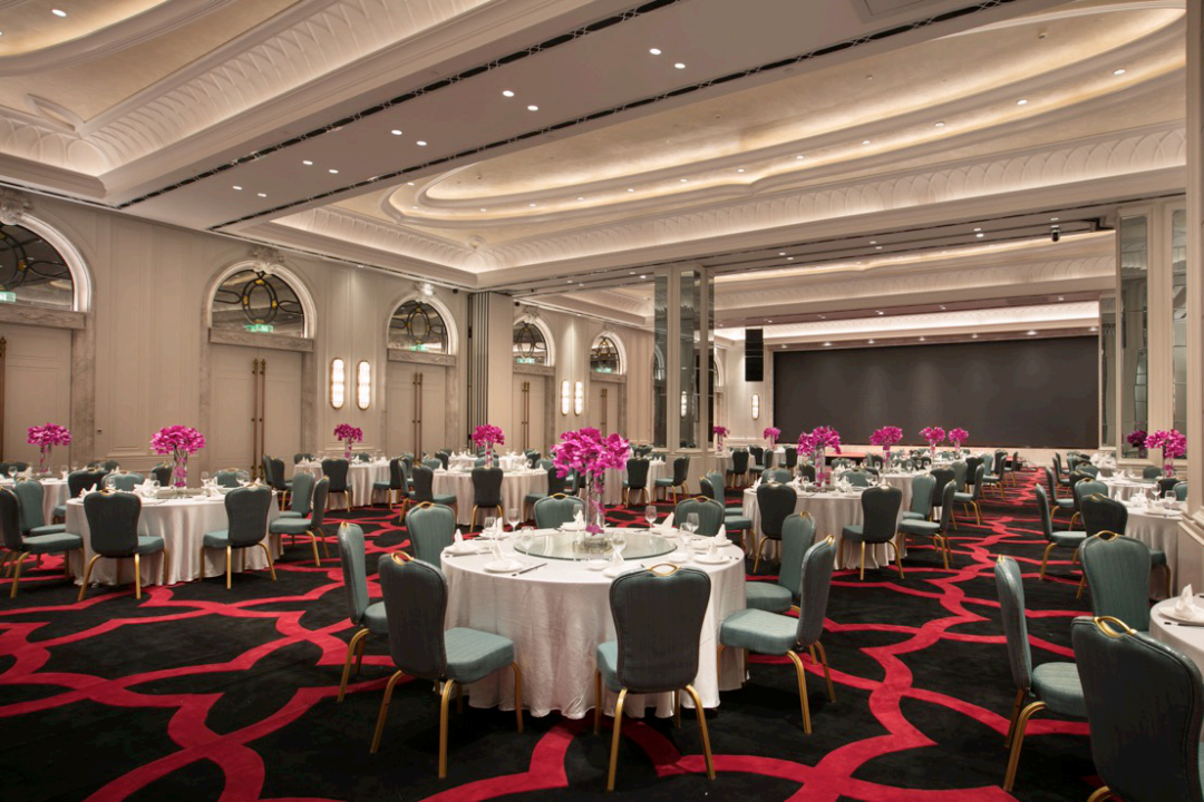 酒店的会议厅也充满着艺术格调。酒店拥有多间共1100平米的多功能宴会厅与会议室,位于酒店3楼巴洛克式的美伦美奂厅挑高6米,具有30米欧式长廊,可同时容纳600位宾客 ,配备了国际一流BOSE音响、超清550寸超大屏及全套智能连接的先进设备,满足各种宴会及活动需求。