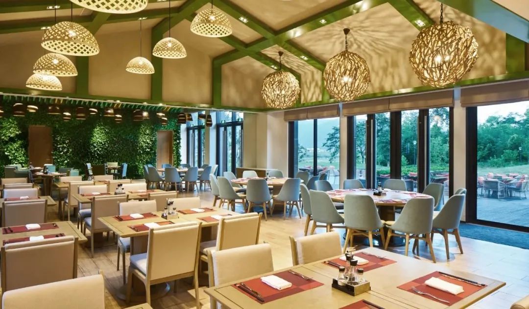 度假村的餐厅装饰风格与度假村宜居的环境相配合。在这里,能享受到国际餐厅的中西式自助美食,竹餐厅的精选美味、宜吧丰富酒水饮料,吉特色餐厅地道的杭帮菜及本地创意料理。