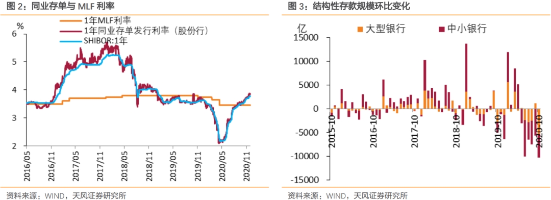 此外,12月结构性存款压降压力预计较此前有所减弱,但同业存单和商业银行债的到期和续发压力依然不小,合计来看银行负债压力仍然较大。