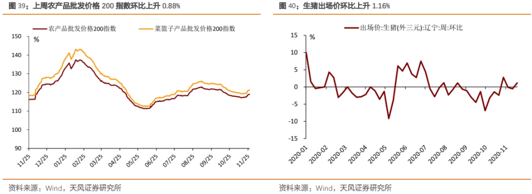 上周农产品批发价格200指数环比上升0.88%;生猪出场价环比上升1.16%。