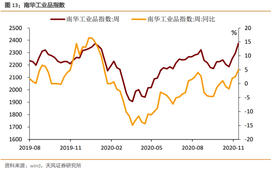 工业:南华工业品指数2406.48点,同比上升4.99%。