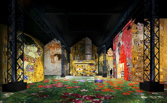展馆分为两个区域,La Halle区域以2段投影循环播放的形式展示了分离派画家古斯塔夫·克林姆Gustav Klimt和一些维也纳画家的作品。