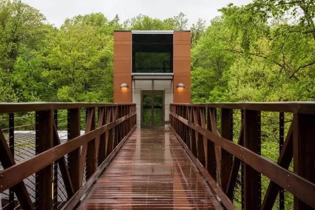水晶桥美国艺术博物馆地处堪萨斯城的正南方,是由享誉世界的建筑师摩西·萨夫迪(Moshe Safdie)精心设计的。建筑的顶部与考夫曼表演艺术中心屋顶有些相似,走廊也有异曲同工之妙。