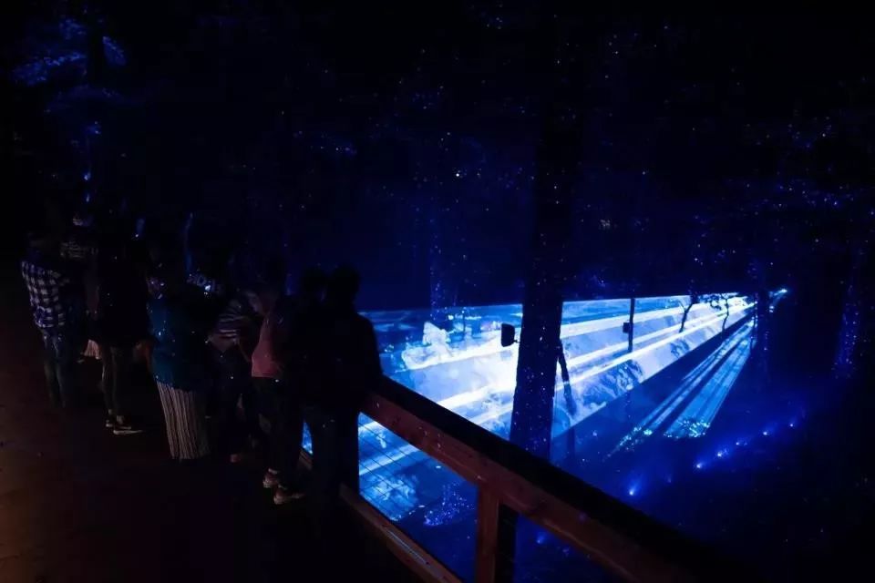当充满幻想的音效与灯光、交互式数字艺术与美丽的自然风景相融合,造就了超越地域和语言隔阂的感动。森林倒映在“溪水”中,仿佛整个世界被光影交织的“水雾”笼罩。