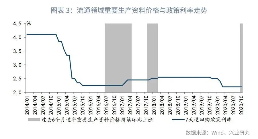 总结来看,虽然在未来一段时间内通胀因素或不是货币政策的主要掣肘,但在经济持续上行且有超预期可能的背景下,货币政策的关注点重新回到稳定宏观杠杆率。历史数据亦显示在PMI持续保持高景气或工业品价格持续上涨的情况下,纵使通胀维持低位,货币当局亦有调升政策利率的可能。