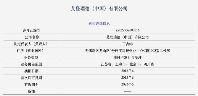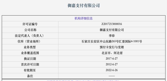 公告透露,2020年9月7日,中国人民银行发布相关批复,同意御嘉支付、艾登瑞德(中国)终止支付业务,注销其《支付业务许可证》。