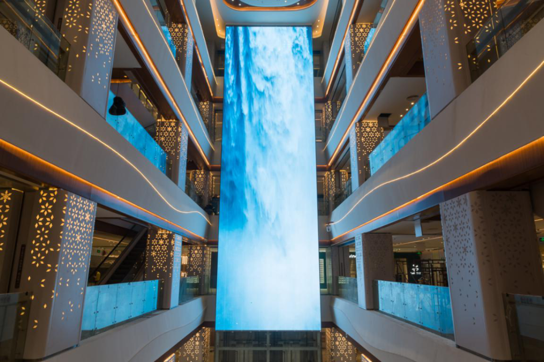首个室内20多米LED屏幕瀑布景观