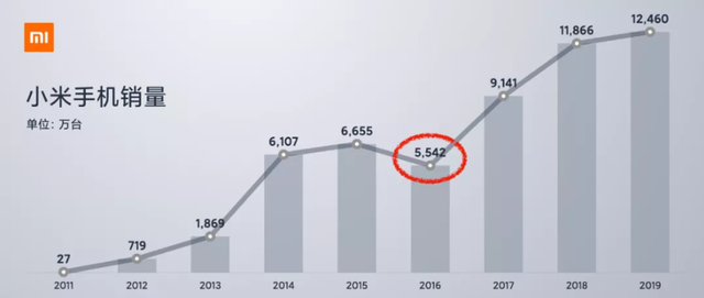 2016年,小米遭遇“滑铁卢”,供应链短板掣肘,当年手机销量降至5542万台,较上年下滑16.7%,按照雷军的话来说,就是“形势极为严峻”。