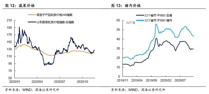 蔬菜价格上涨。11月26日,农业部菜篮子批发价格指数收于121.30,较上周五上涨1.56%;山东蔬菜批发价格指数收于127.62,较上周五上涨4.93%。