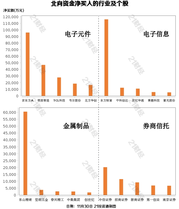 据21投资通智能监测,11月30日,北向资金净买入49.39亿元,其中沪股通净买入11.59亿元,深股通净买入37.8亿元。