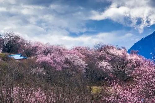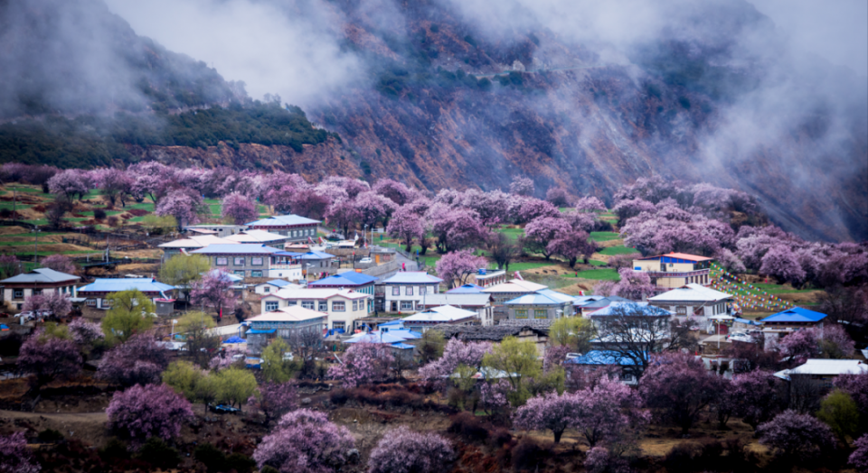 藏族姑娘与妖娆桃花可谓人面桃花相映红