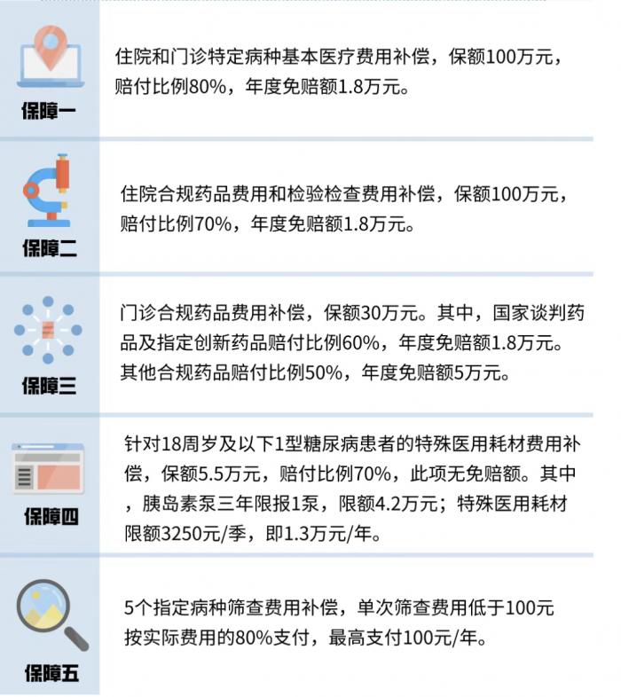 按照“保大病”的原则,“穗岁康”设定多个层次的补助待遇,在适当保障医保目录范围内个人负担医疗费用的基础上,重点保障合规的自费医疗费用,包括了住院和门诊的自费医疗费用。