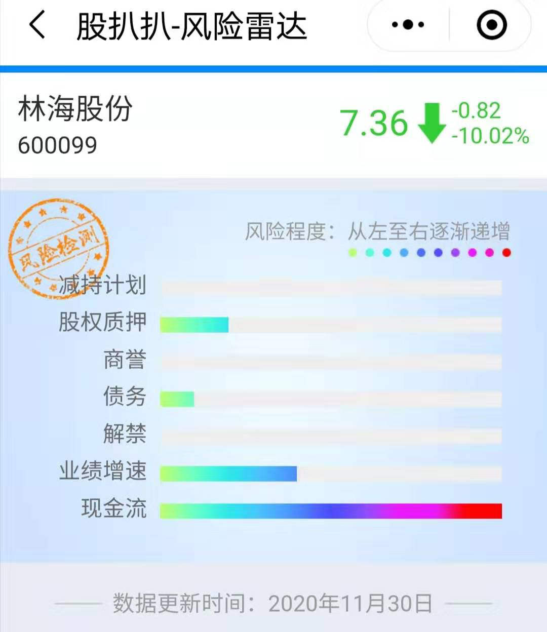 从股扒扒程序中,我们可以看到林海股份还存在的一些风险。