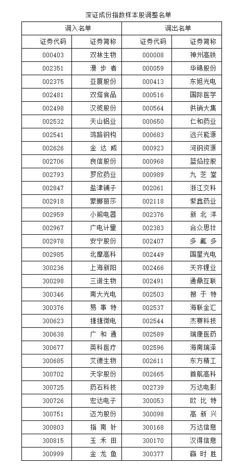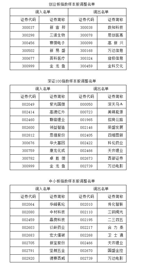 12月1日,深交所发布关于调整深证成指、创业板指、深证100等指数样本股的公告,决定于2020年12月14日对深证成指、创业板指、深证100等指数实施样本股定期调整。漫步者、天山铝业、小熊电器等调入深证成指;金龙鱼、英科医疗等调入创业板指。