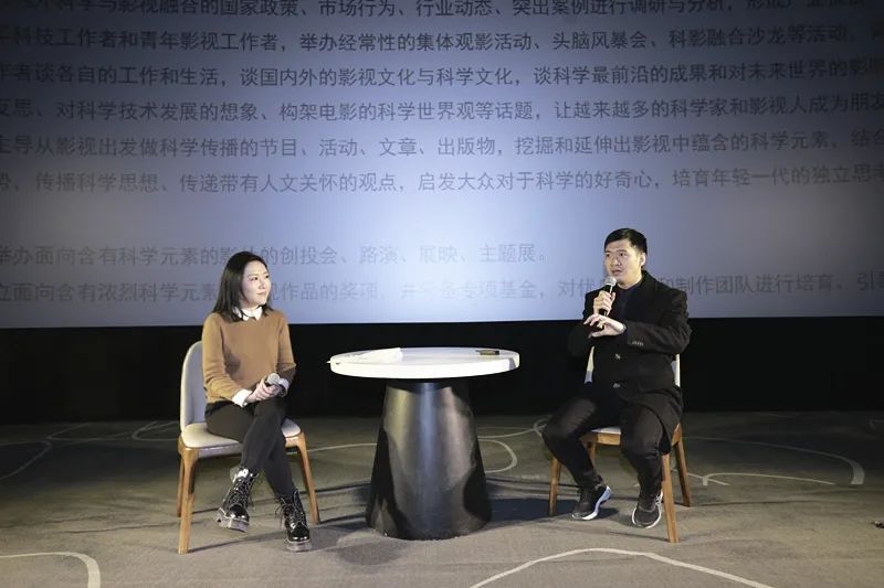 11月26日的文娱价值官新文娱沙龙上,最让人惊喜的嘉宾,莫过于“极客电影圆桌”上,由极客电影创始人李东东女士与科学与影视融合专委会常务副主任林育智先生进行的,关于“科幻十条”颁布过程、以及中国科学领域对电影产业的直接影响的对话。