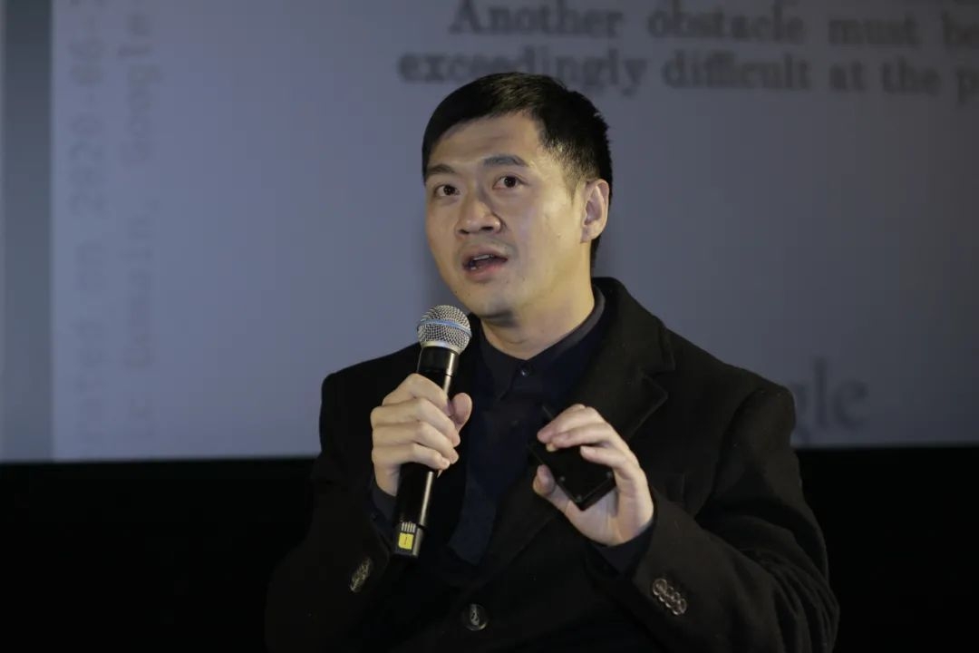 林育智:但当时就是一群人在揭牌的时候,我们又组织了另外一批群人,这是一个闭门的研讨会,那个侧脸是郭帆,包括做电影后期特效,我们所做的东西一直都是在幕后,这个论坛不向任何人公布,不像任何人透露成果,我们会形成一份文件来给相关的领导提供一个建议,比如说相关的客观指标政策应该在明年或者后年,我们应该如何实施,制定怎样实施细则。