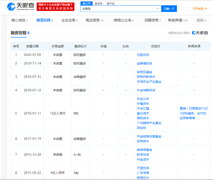 百果园成立于2001年,是一家集果品生产、贸易、零售为一体的水果专营企业。据天眼查APP显示,成立近20年的百果园,先后经历8轮融资,受一级资本市场青睐。