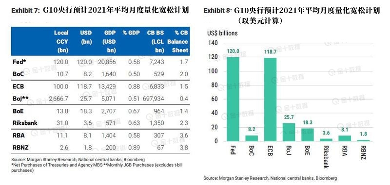 结合这个数字,大摩预计,到2021年,这8家发达国家央行平均每月的流动性增量相当于年名义GDP 的0.7%。Hornbach补充道,