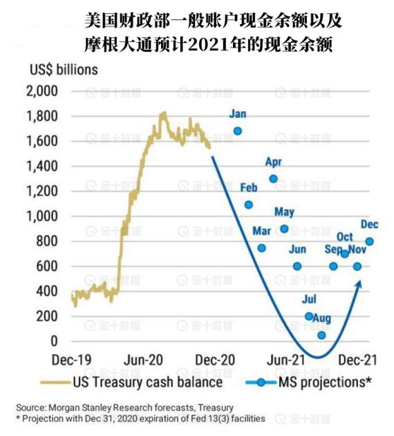 摩根士丹利预计,美国财政部将在明年的前8个月释放1.3万亿美元的流动性。