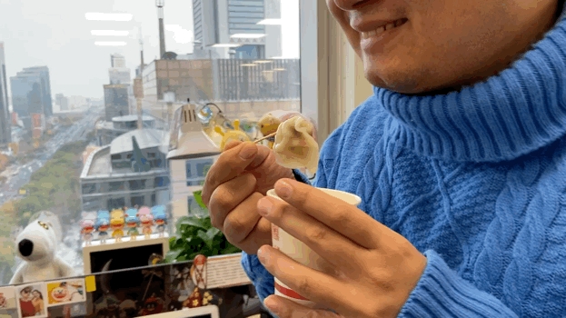 “这个馅我觉得比较普通,饺子皮我喜欢,像是冰皮月饼的皮,弹弹糯糯的。”