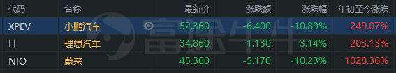造车新势力高开低走,小鹏、蔚来跌超10%