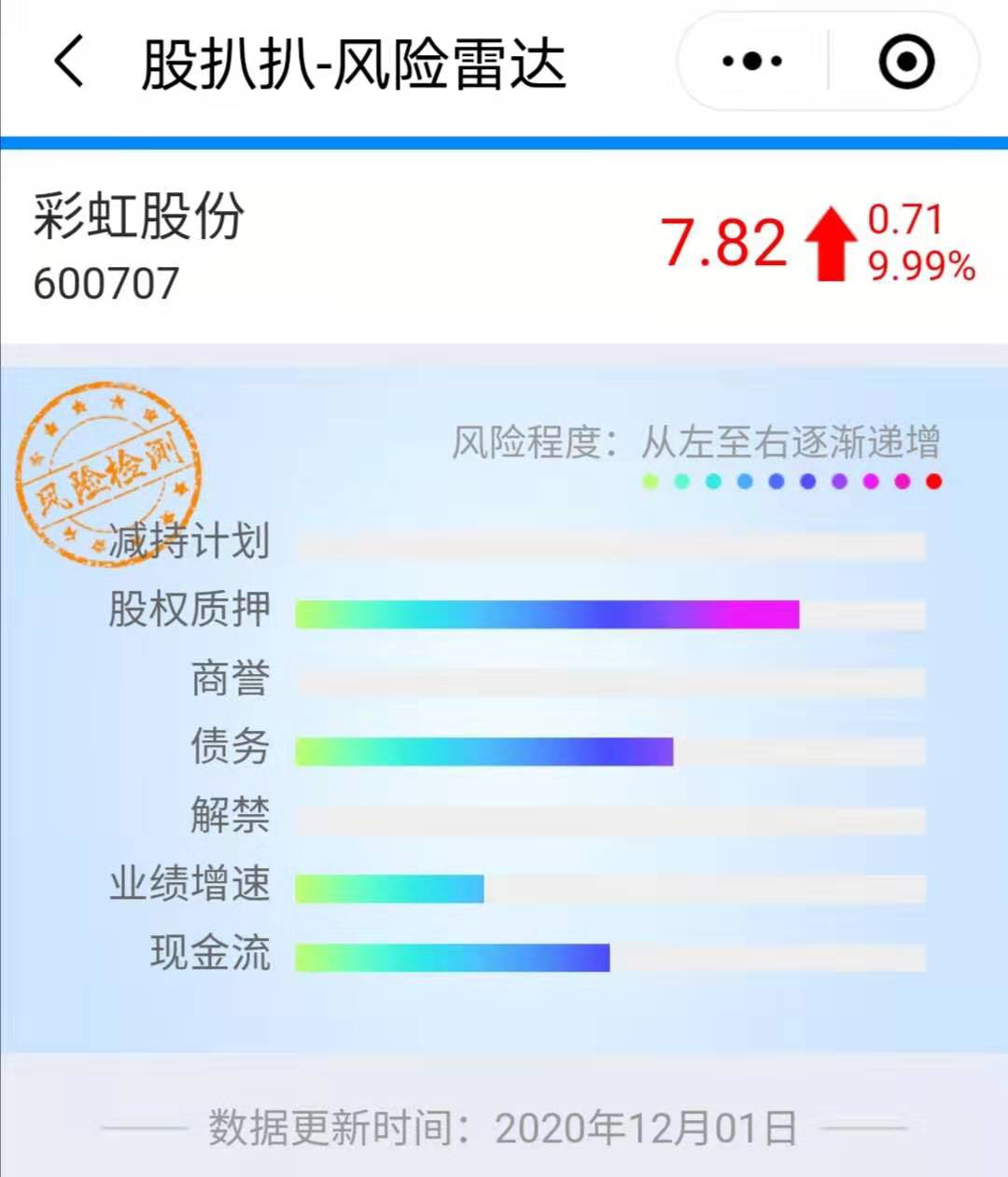 从股扒扒程序中,我们可以看到彩虹股份还存在的一些风险。