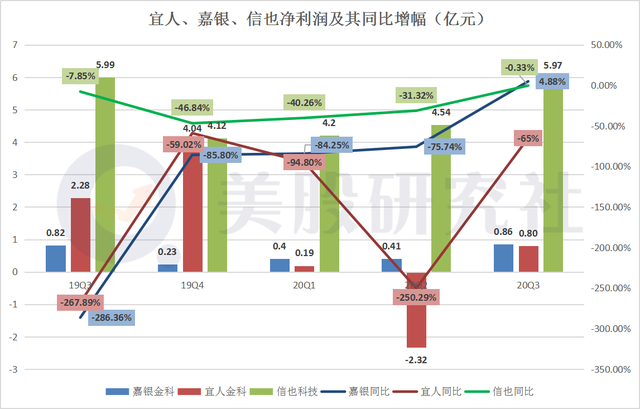 然而即使在费用与成本方面宜人与嘉银都有比较好的控制,两家公司的净利润表现却不尽相同,第三季度嘉银金科的净利润较去年出现正增长,这表明嘉银科技在清零P2P传统网贷业务后,依旧有比较好的盈利能力。