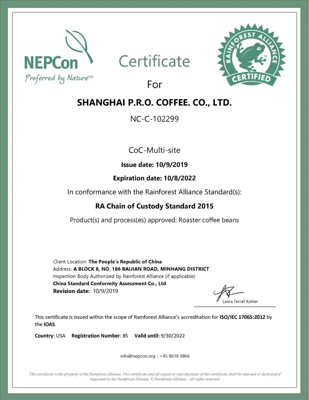 璞珞咖啡是国内首家取得雨林联盟认证的咖啡工厂