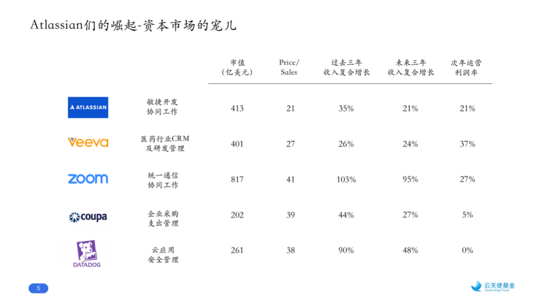 一是由于技术跃迁催生的新产业,也许这个产业现在看起来不大,但随着时间的变化会形成新业态,像Atlassian、Datadog都是受益于底层技术开发催生的新业态;