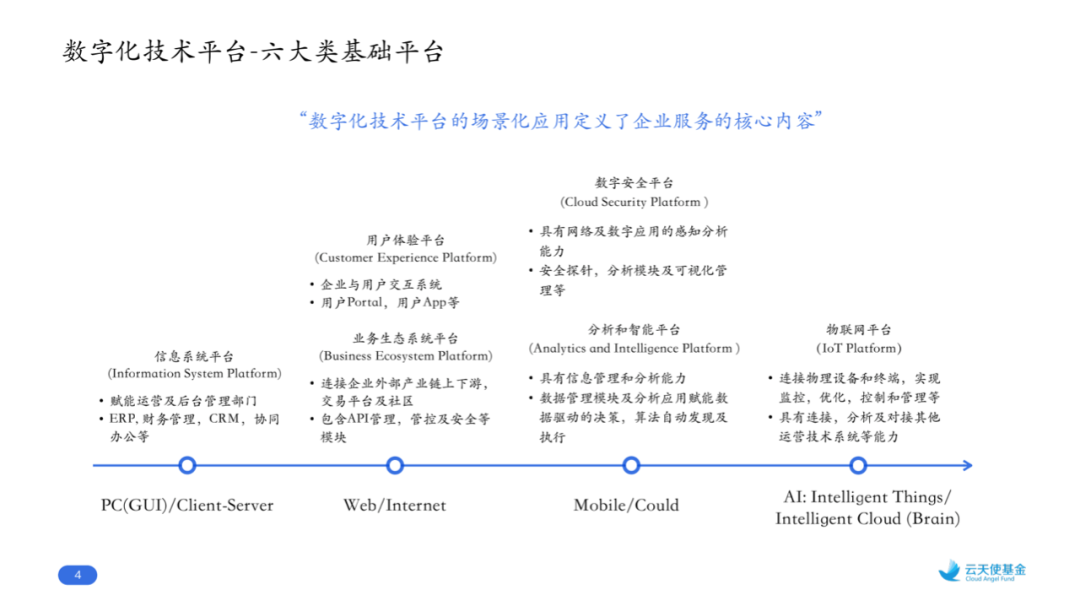 很高兴今天能有机会分享我们投资数字化平台的一些观察,接下来我主要会从IT技术发展、行业应用及数字化平台趋势、路径与机会三块来展开。
