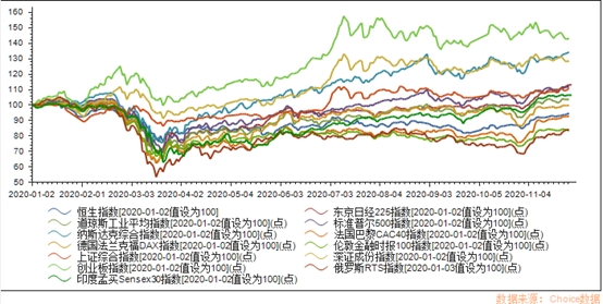 而纵观全年,股指的走势也从侧面反映了我国“战疫”的成功,创业板指、深证成指、上证指数涨幅在全球主要股指中分别排名第1、3、4名。而近期中美两国疫苗量产方面消息越来越多,全球股市受此刺激,风险偏好大幅上升,都走出了较好的反弹走势,这时我们可以看到,之前涨的比较好的,代表新兴产业、科技公司的指数,最近反弹力度相对较弱,而跌的较多的,以传统行业为主的指数,近期反弹力度较强,全球股市的风格都发生了切换。