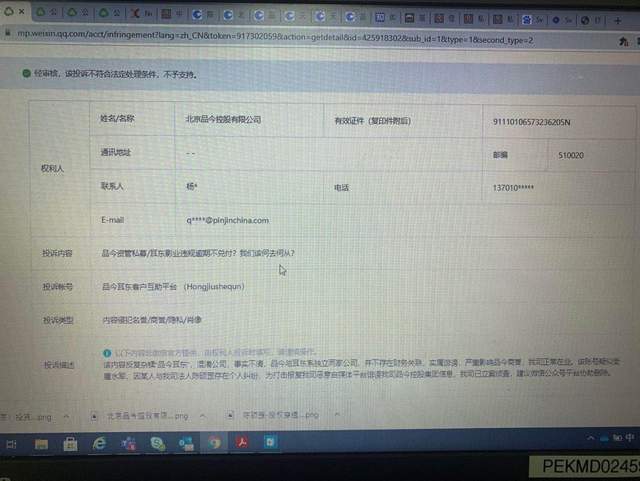 另一位从事自媒体的投资者,在多次协商退本金无望的情况下,写了一篇公众号推文《品今资管私募/耳东影业违规逾期不兑付?我们该何去何从》的文章很快被品今控股投诉。被投诉理由写到:"该内容反复杂糅'品今耳东',混淆公司,事实不清,品今与耳东系独立两家公司,并不存在财务关联,实属诽谤,严重影响品今商誉,我司正常在业…"