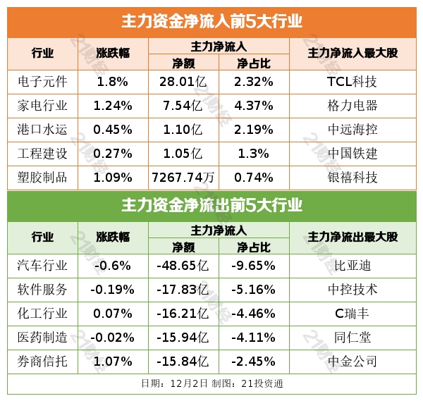 12月2日,北向资金净卖出40.25亿元,其中沪股通净卖出8.48亿元,深股通净卖出31.77亿元。北向资金此前已连续4日保持净买入,合计净买入金额达297.37亿元。